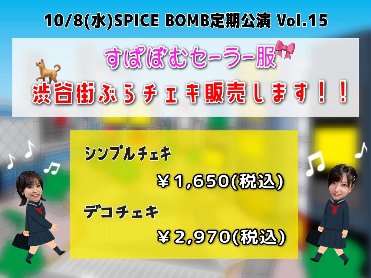 定期公演vol.15にて着用する、セーラー服で渋谷街ぶらデコチェキ・ノーマルチェキのお申込みを承ります!