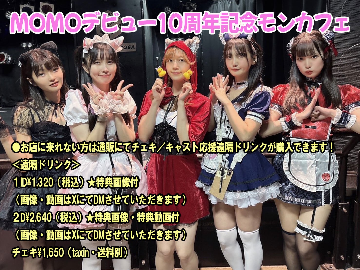 10/18(土)MOMOデビュー10周年記念モンカフェ応援遠隔1キャストドリンクをご注文いただくと、お申込みいただいた特典としてありがとう画像プレゼント!